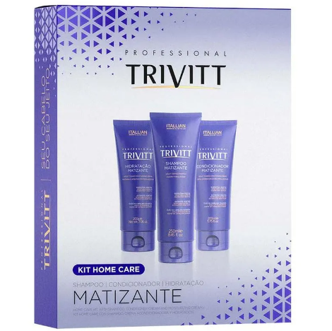 Trivitt Home Care Matizante com Hidratação Intensiva oferece hidratação intensa, maciez e resistência ao cabelo quimicamente tratado. Exclusivamente para manutenção dos cabelos loiros ou com mechas, restaura, nutre e neutraliza os tons amarelados e alaranjados causados pelo desgaste dos corantes. Proporciona brilho platinado desde a primeira aplicação.